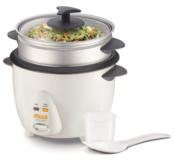 La olla de arroz IMUSA es perfecta para los estilos de vida ocupados de hoy. Los beneficios son: – Ahorra tiempo: Haz delicioso arroz en solo minutos. Esta es una herramienta maravillosa cuando vuelves a casa después del trabajo o la escuela y necesitas preparar una comida. – Eficiencia energética: Menos tiempo de cocción reduce el consumo de energía en la estufa. – Características fáciles de usar: Experimentará la comodidad de un interruptor de encendido y apagado sencillo. Este aparato también tiene un ajuste de calentamiento que le permitirá recalentar su delicioso arroz. – Arroz perfecto: El arroz puede ser difícil de cocinar, obtener la textura correcta es crucial. Ahora puedes hacer arroz perfectamente cocido cada vez!