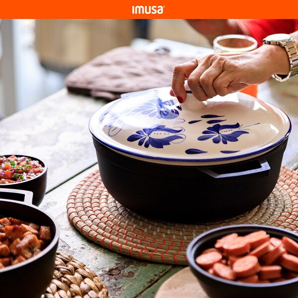 Los Calderos IMUSA del Carmen de Viboral son Patrimonio cultural inmaterial de Colombia, gracias a sus tapas en cerámica pintadas y decoradas HECHAS 100% A MANO por Artesanos. Una de las mejores aplicaciones del antiadherente, pues su capa es más gruesa y es posible la cocción sin uso de aceites o grasas ¡Prepara pescados, tortas para cumpleaños y más! Es hora de hacerlo a tú manera ¡Reinventa, crea y sorprende!