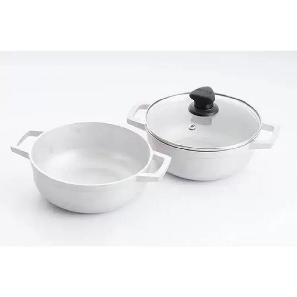 Esta elaborado en aluminio fundido el cual es un excelente conductor y conservador de temperatura que agiliza el proceso de cocción,