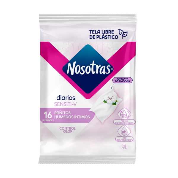 Nuestra Fórmula Sensiti V tiene un suave y agradable aroma, ideal para pieles sensibles y que todo las irrita. Te limpia suave y delicadamente controlando olores. ¡Ahora hechos con fibras de origen natural y biodegradables, 100% libres de plástico!